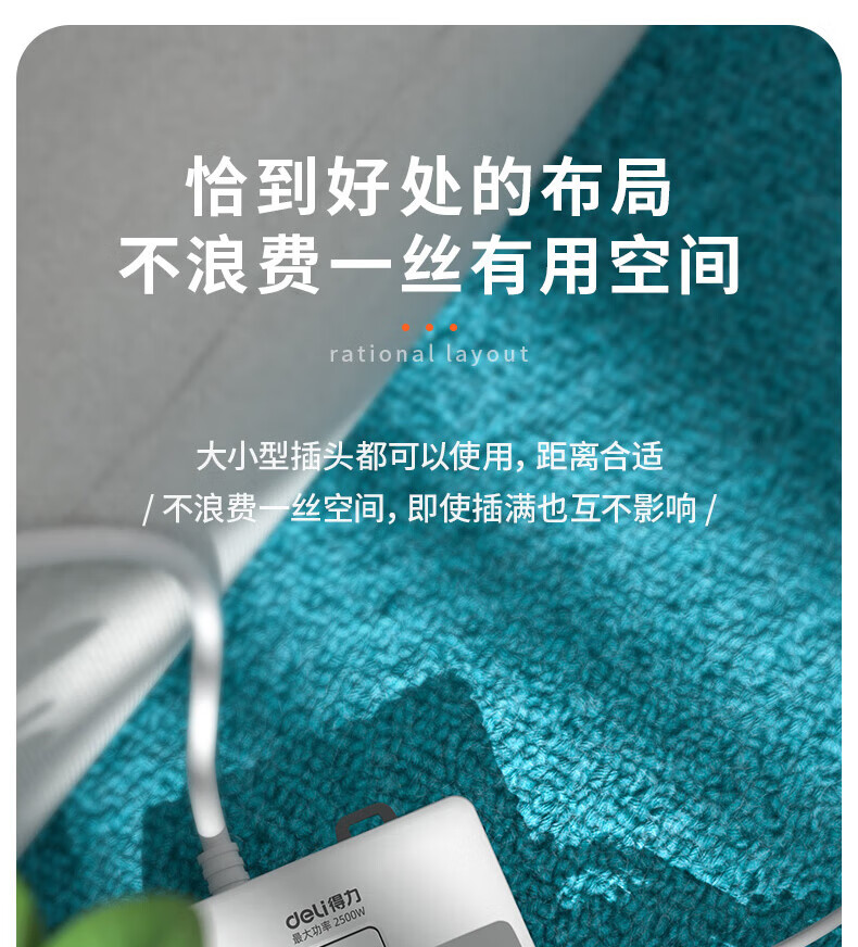 得力(deli)18168-10插座多...