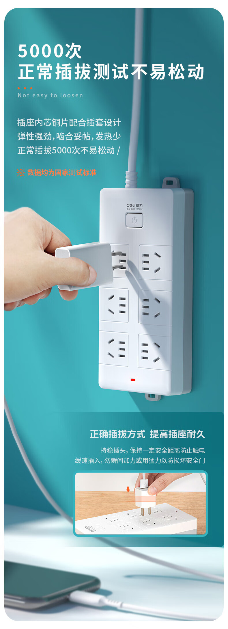 得力(deli)GN-109K插座多...