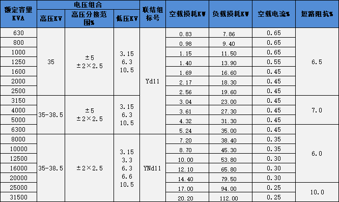 35KV級 11型三相雙繞組無勵磁調壓電力變壓器